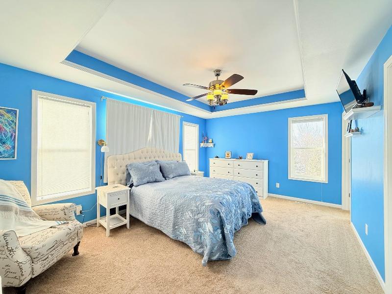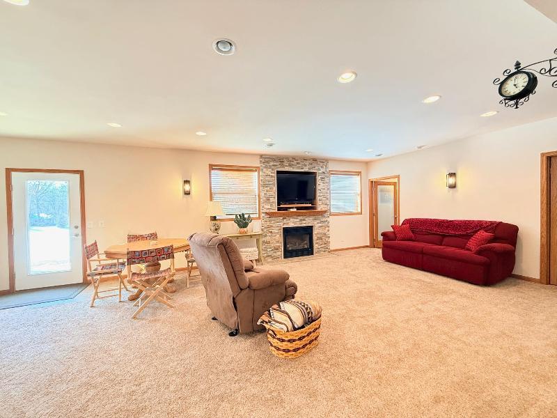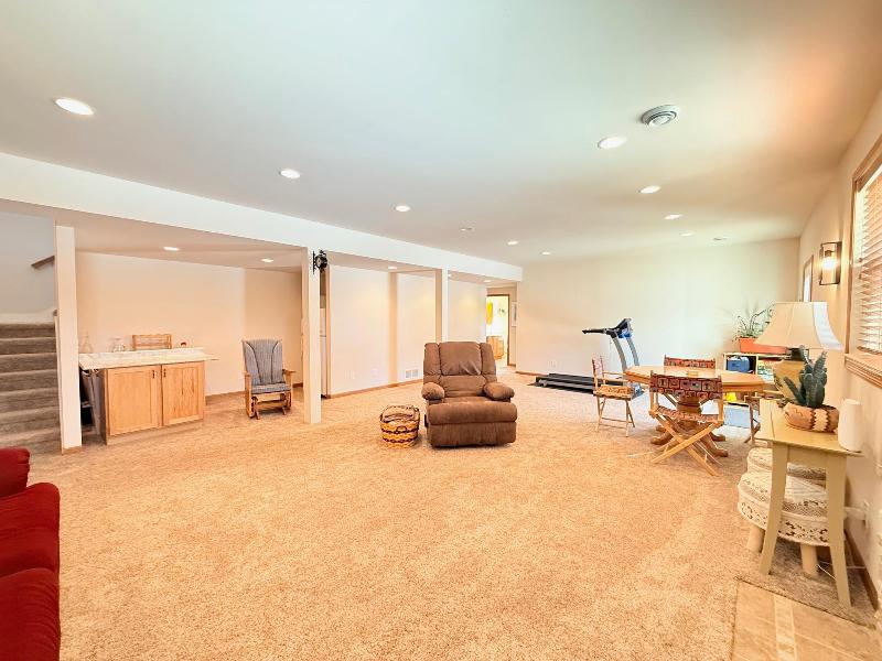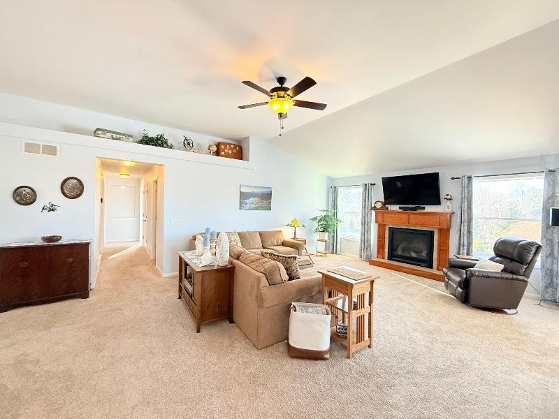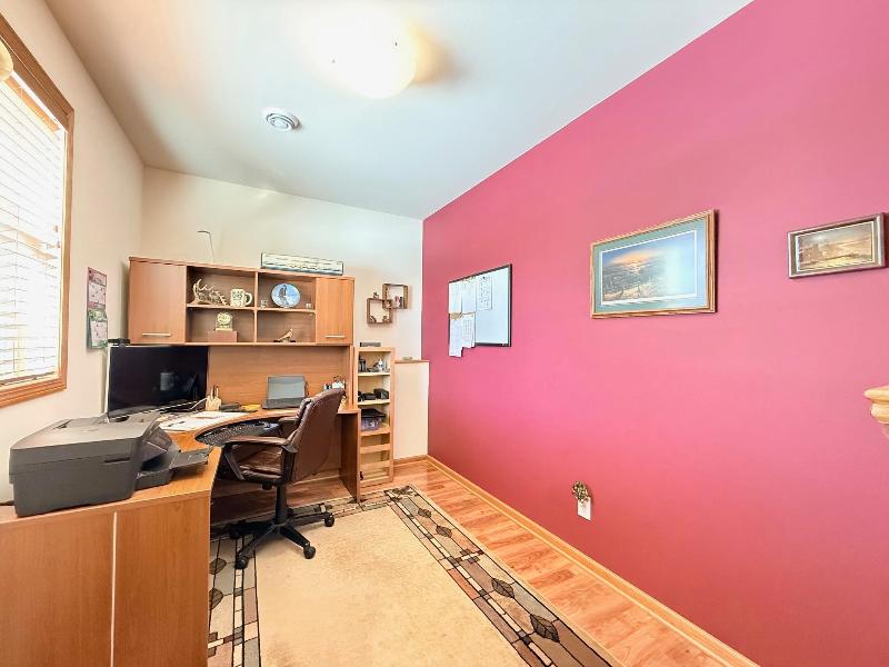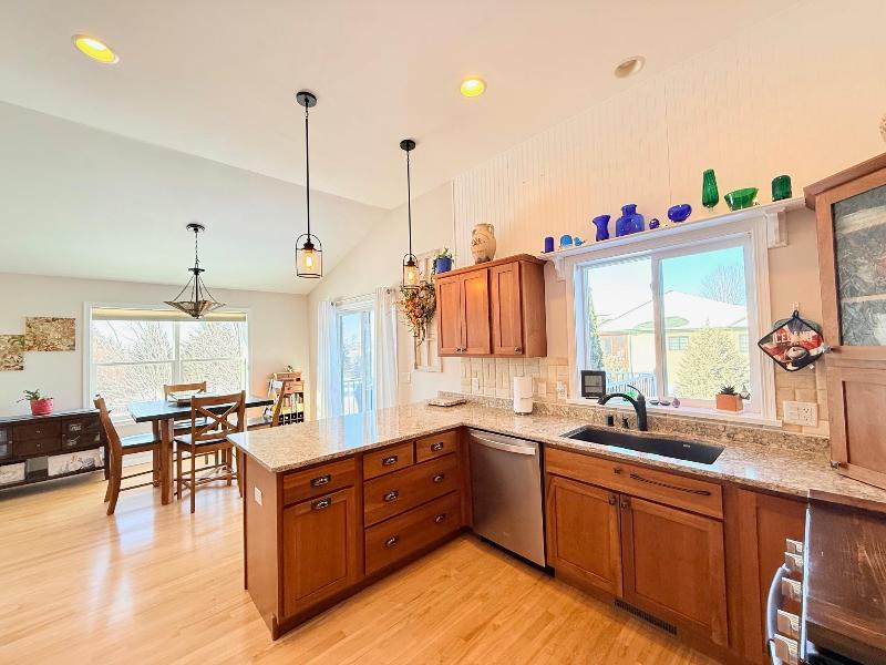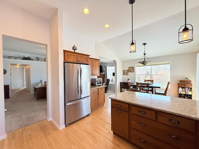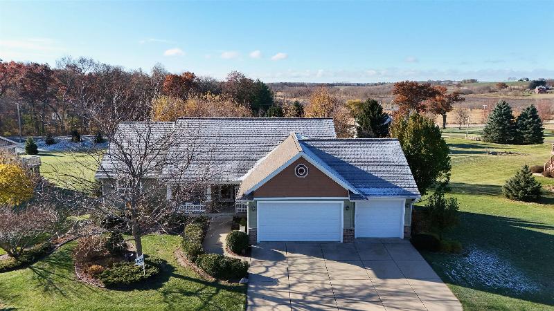 This simply charming ranch on ¾ acre with mature trees offers nearly 2,800 sq ft, 4 bedrooms + office, 3 baths, main level laundry and 3 car garage (3rd stall extra deep for storage / workshop). Spacious kitchen & dining area with stainless steel appliances, cherry cabinets, granite countertops, breakfast bar & maple floors. Great room with soaring ceilings, huge windows and gas fireplace, cheery owners suite with walk-in closet and ensuite. Walk-out lower level offers large family room with floor to ceiling stone gas fireplace, 4th bedroom, office/flex room, 3rd bath and tons of storage. The maintenance free deck, pergola covered patio and firepit are perfect for entertaining or just enjoying your ¾ acre meticulously maintained country lot with mature trees. This one owner ranch has been lovingly maintained and is move in ready. Recent updates include furnace (2025), central air (2025), maintenance free decking (2021).