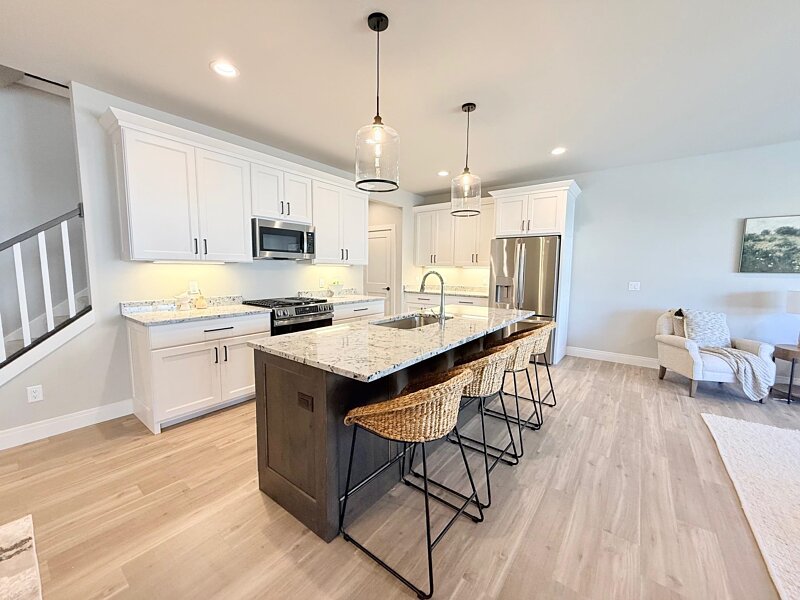 Completion April 2026. Quality built 2 story townhouses with 1,900 sq ft, 3 bedrooms, 2½ baths, spacious kitchen & dining area with quartz or granite countertop options, Amish custom cabinets, stainless steel appliances, great room with gas fireplace and large window with tons of natural light, owners suite with huge walk in closet, main level laundry and ½ bath, cozy screened porch, covered private entrance & 2 car attached garage. Option to finish lower level prior to closing, (LL option: family room, 4th bedroom / office and additional full bath.) Steps from the Upper Yahara River bike and walking trails & Sunfish Pond.
